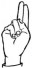 На ћирилици написано НЕБОЈША АМАНОВИЋ састоји се из 15 слова [?]. Исписано ћириличном једноручном азбуком за глувонеме: